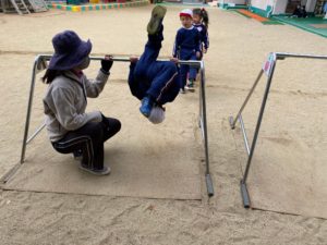 年長さんになると、体のバランスや力の使い方等にも成長が見られ、たくましくなってきましたё