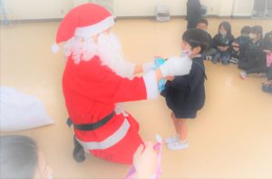 202012/24 終業日 ブログmatsumushi 今日は2学期の終業日。 今日はサンタさんが幼稚園にプレゼントを届けに来てくれましたё 子どもたちもサンタさんからプレゼントをもらえてとっても嬉しそうでしたё 明日から少しの間幼稚園生活はお休みですが、 手洗いやうがいを忘れず、早寝早起きを守って元気に過ごして下さい。 冬休みのホームクラスは、 12/25(金)、12/28(月)、1/5(火)、1/6(水)、1/7(木)となります。 コメントは受け付けていません。