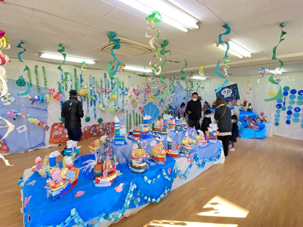 造形展は園児たちがたくさん作ってきた作品や絵画が展示されるイベントです。