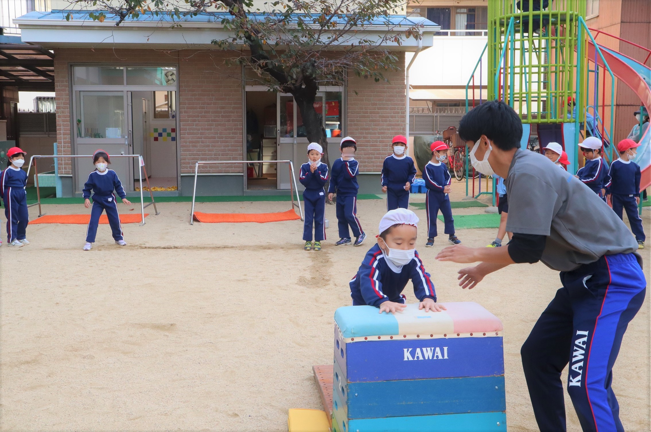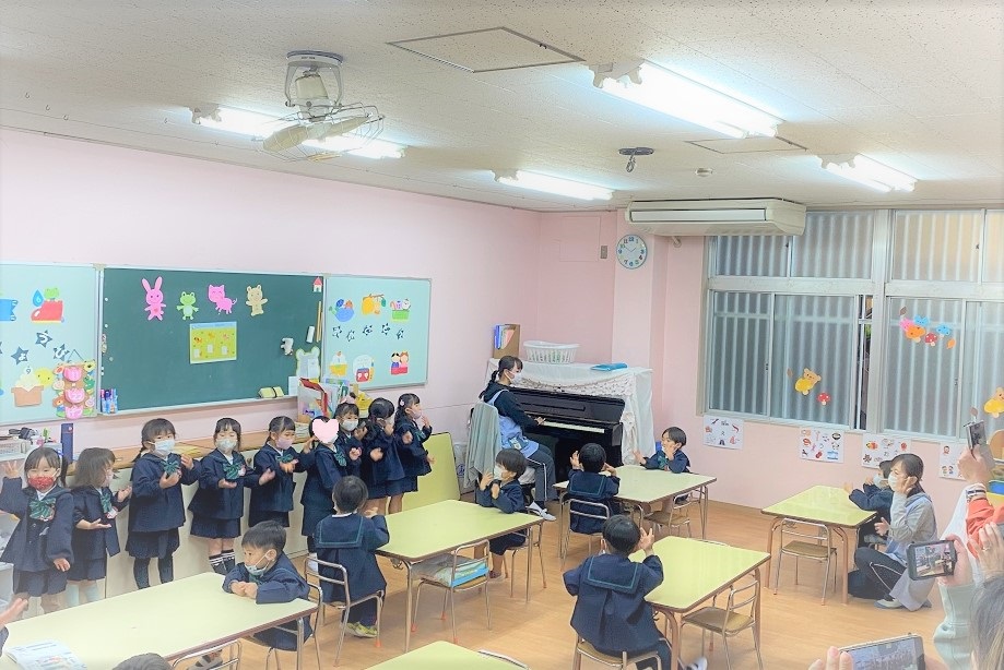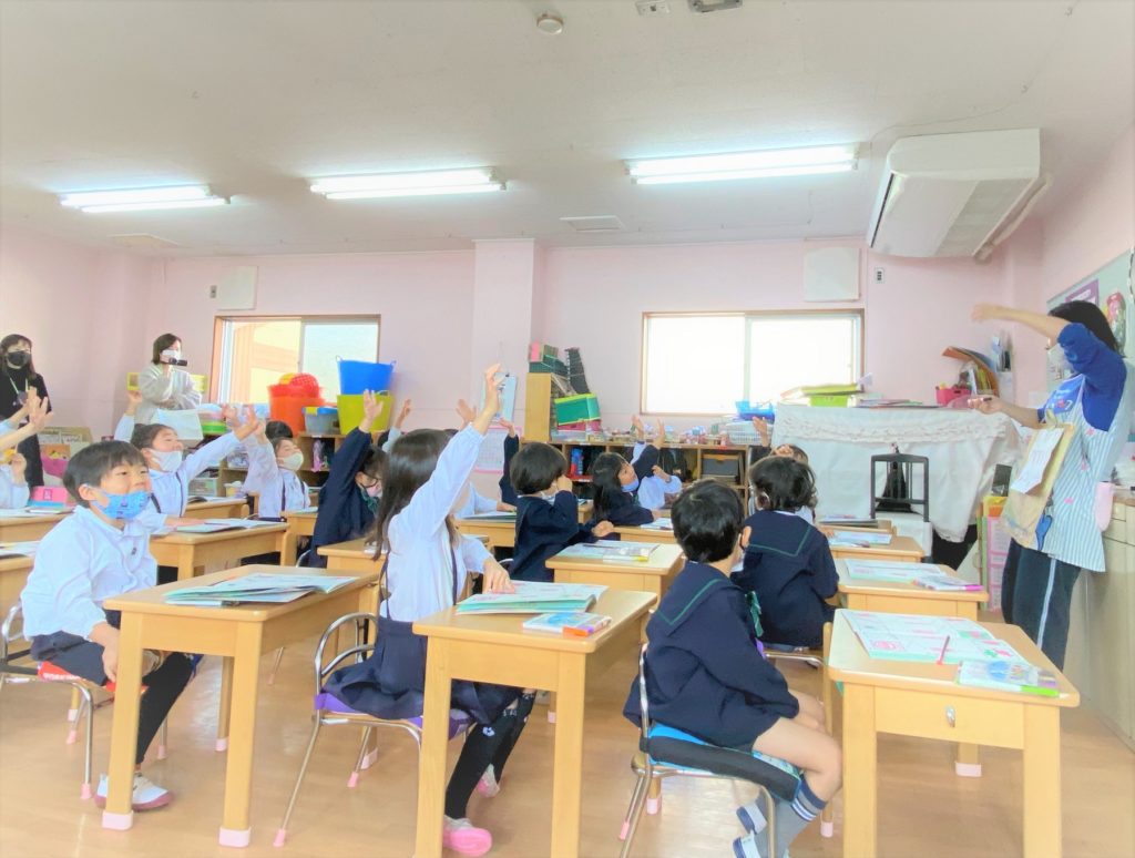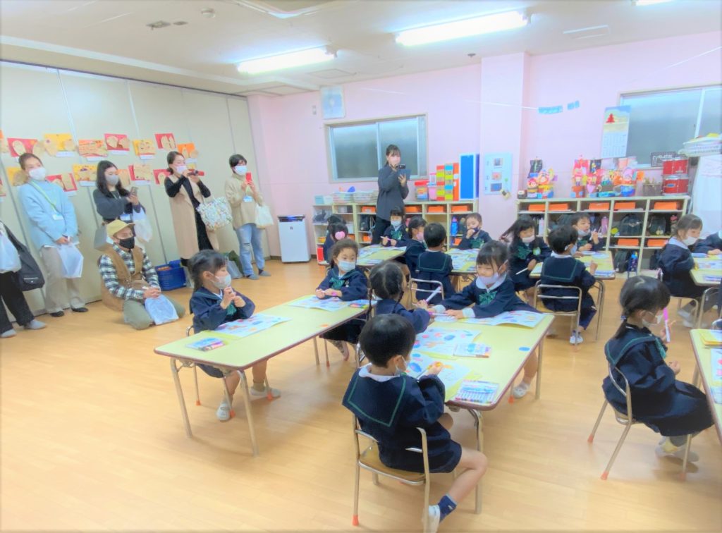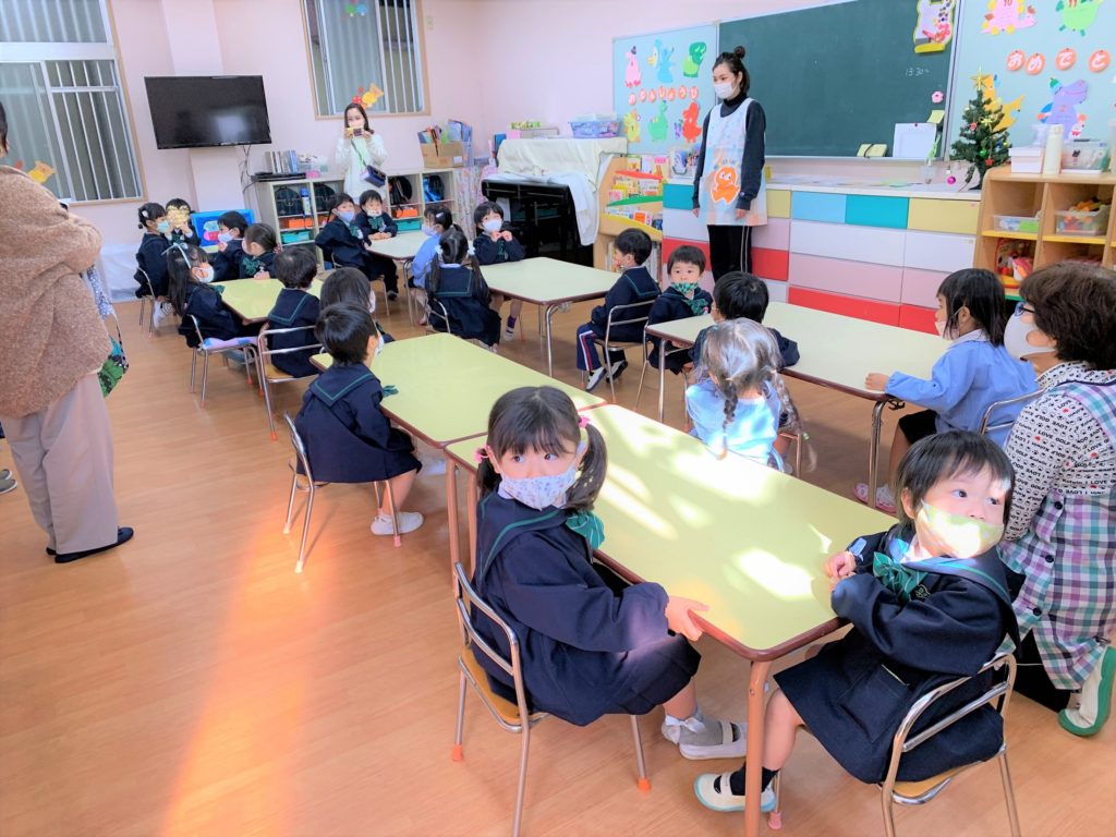子どもたちは椅子に座って先生のお話を聞いていましたが、気になってそわそわ・・・🥺🙄