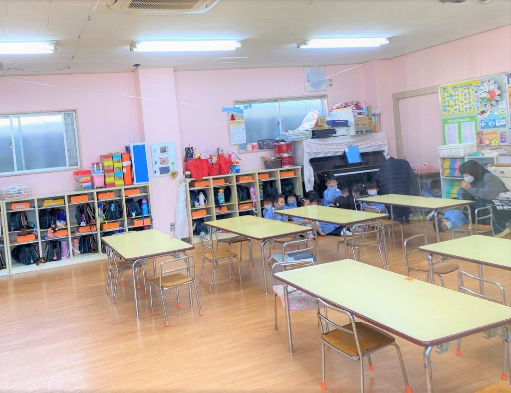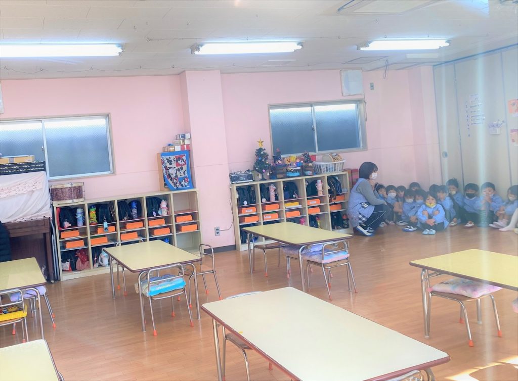 今日は避難訓練として、幼稚園に不審者が来た時の避難行動をみんなで実践しました。