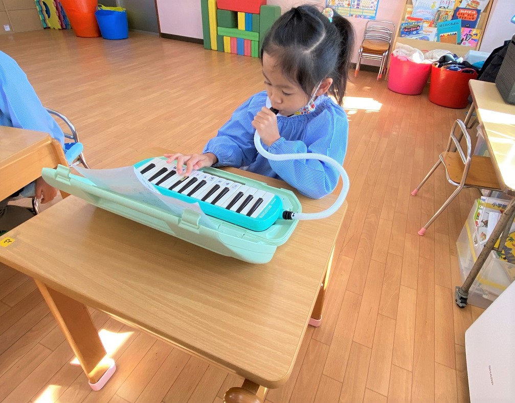 年長組では、クリスマス会に向けてただいま鍵盤ハーモニカを練習していますё