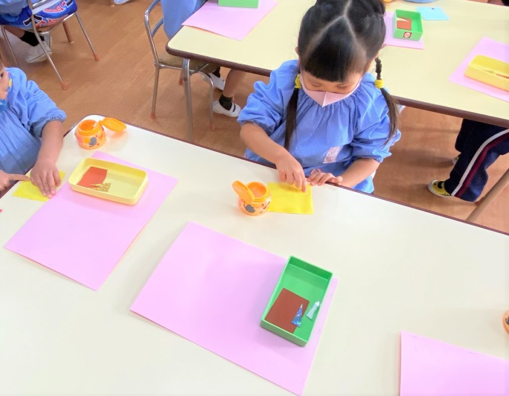 制作で使うのりや道具も、自分で取りにいって準備できるようになりました