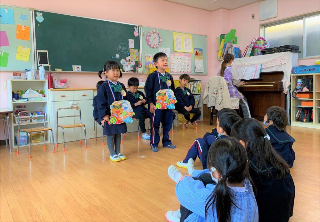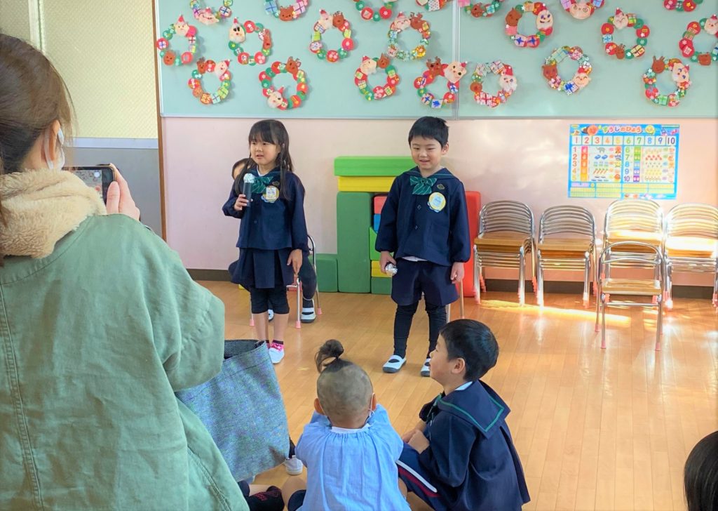 みんなに自己紹介をしたり、お歌を歌いました🎶この日のために練習してきたから、みんな上手にできました✨