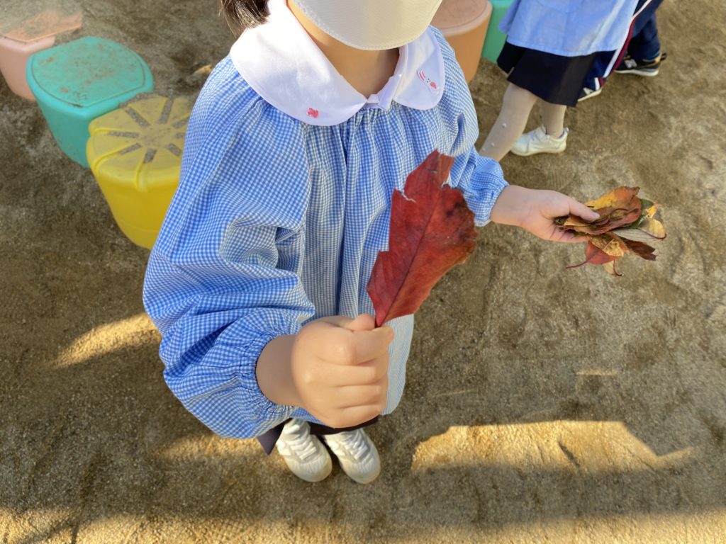 子どもたちにとって、落ち葉ひろいも冬の遊びのひとつです🍂