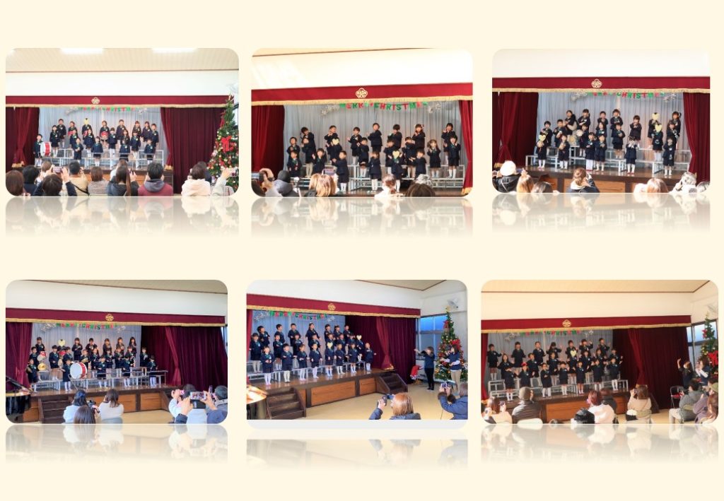 年少組や年中組のみんなも、クリスマスのお歌の合唱や楽器を使った合奏を、見に来てくれた家族に人たちの前で披露しました。今日の子どもたちの元気できれいな歌声は、サンタさんにきっと届いていると思います✨