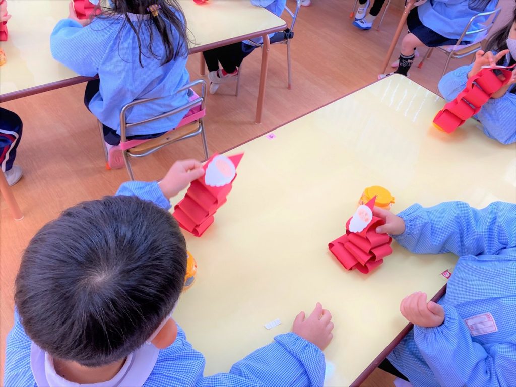 年少組では、みんなでいろんなサンタさんを作ってみました🎅🏻 こちらも素敵でかわいいサンタさんが完成ですё