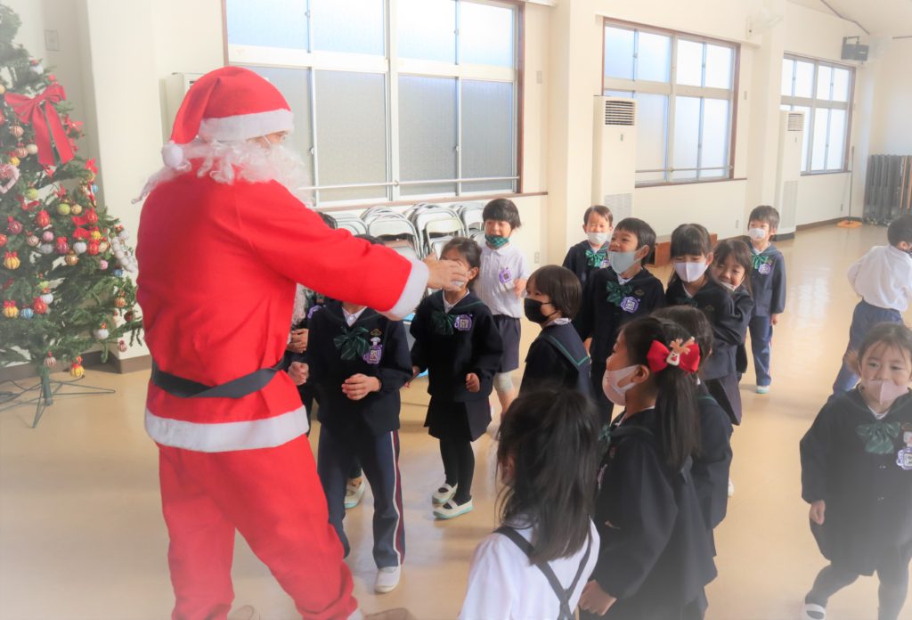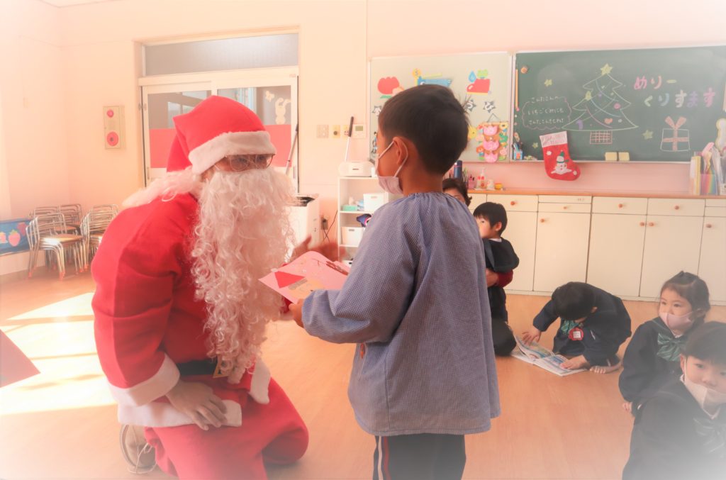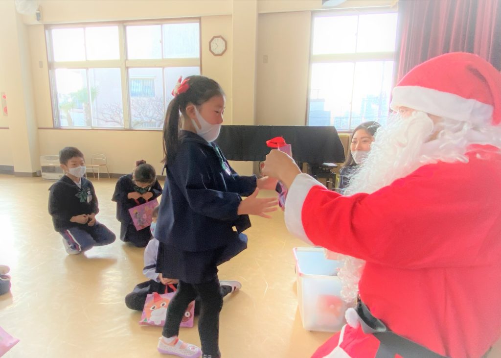 今日は2学期の終業日だったのですが、冬休みに入る前のサプライズで、サンタクロースさんがみんなにプレゼントを届けに来てくれましたё