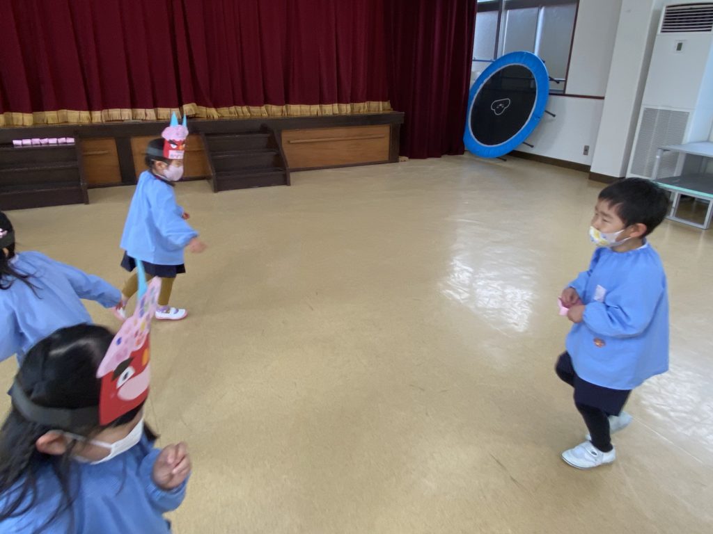 202202/03 節分 ブログmatsumushi 2月3日・今日は節分ということで、幼稚園で豆まきをしました。 子どもたちが鬼になってみて、”ガオーッ!”と飛び出してきました。 「鬼は外!福は内!」 疫病退散の気持ちをこめて 鬼に豆を投げると、かわいい鬼たちも逃げていきました コメントは受け付けていません。