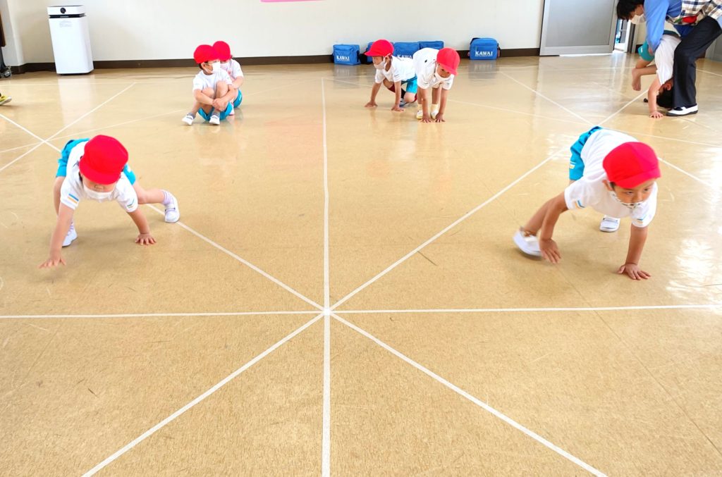 年中組ははじめてのカワイ体操ё 先生たちと一緒に準備運動からクマ歩き、マットの上でくるりんぱ💫✨