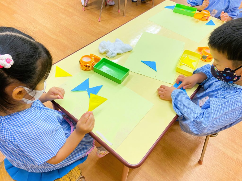 ・(年少) 折り紙とのりを使って、ちょうちょさんを作ってみました🦋✨