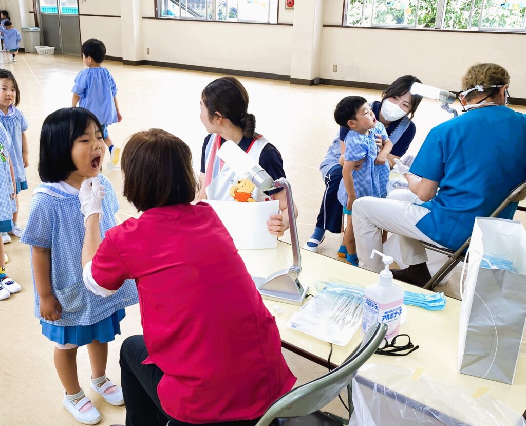 今日は幼稚園で歯医者さんの歯科検診の日😁