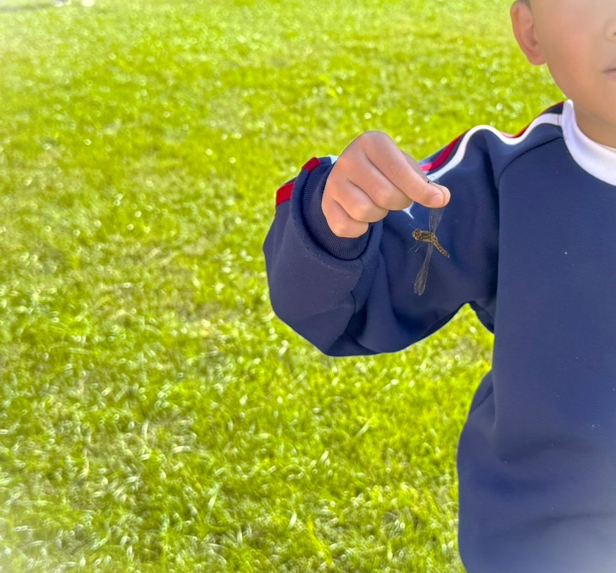バッタやトンボを見つけて大はしゃぎ! 大きなカマキリも発見しました👀