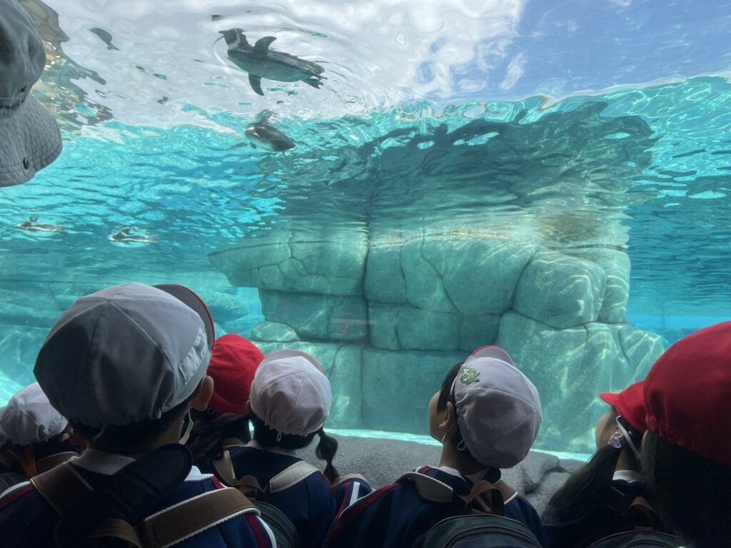 園内では、アフリカサバンナの広い景色や、ペンギン・アシカたちの元気な動きをじっくり観察し、子どもたちは「見て見て!」と興味津々。