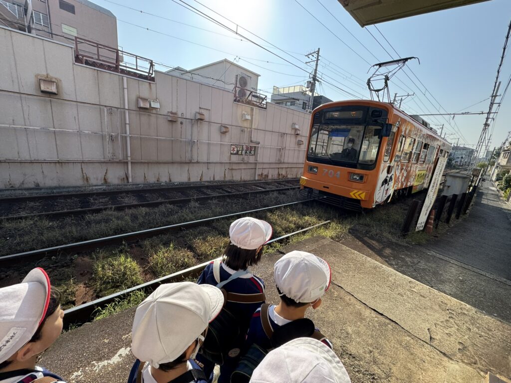 幼稚園を出て東天下茶屋駅まで歩き、路面電車に乗って出発🚋