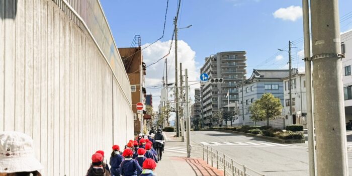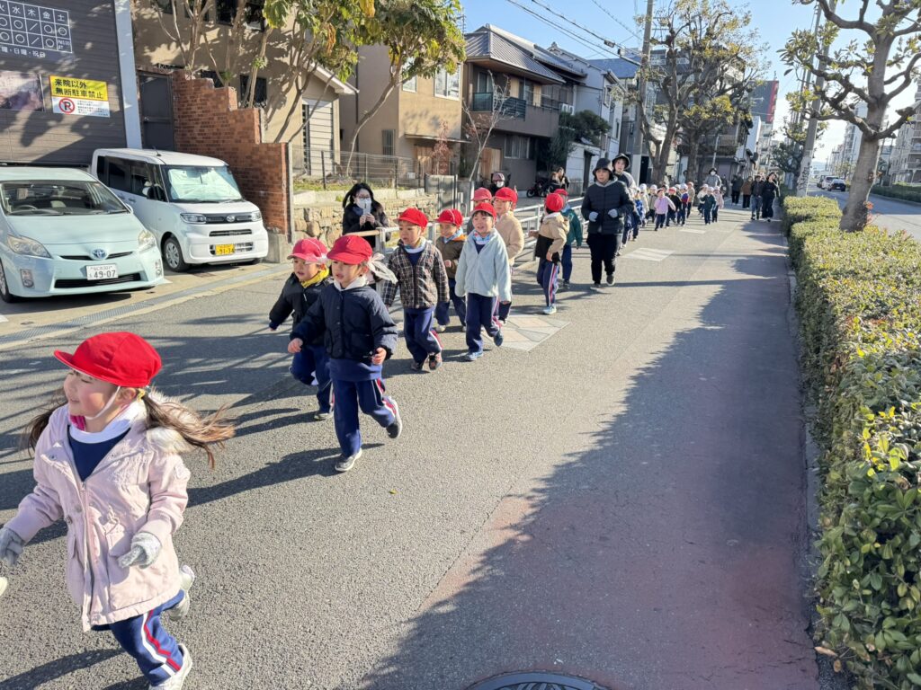 幼稚園を出発し、先生や友だちと一緒に近くの公園まで走ります.